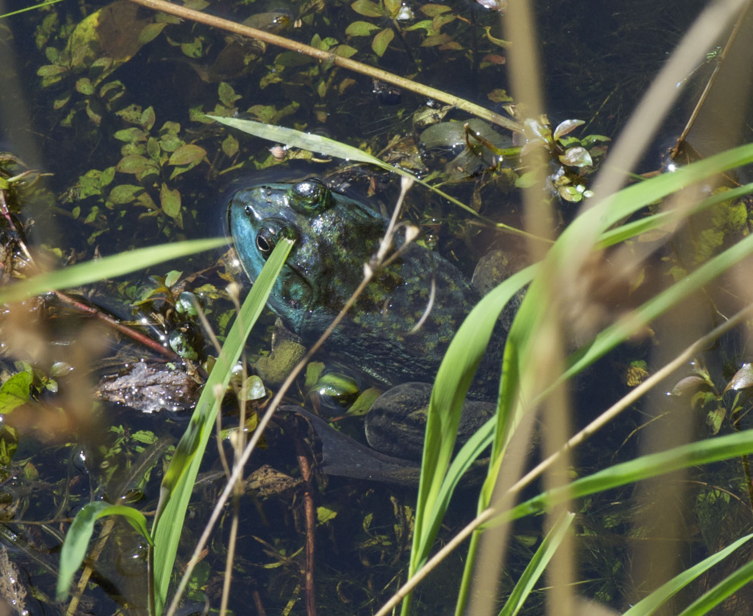 (Parker Meadow, 8/20/12 11am) A blue frog! The blue color is due to a lack of yellow pigment.