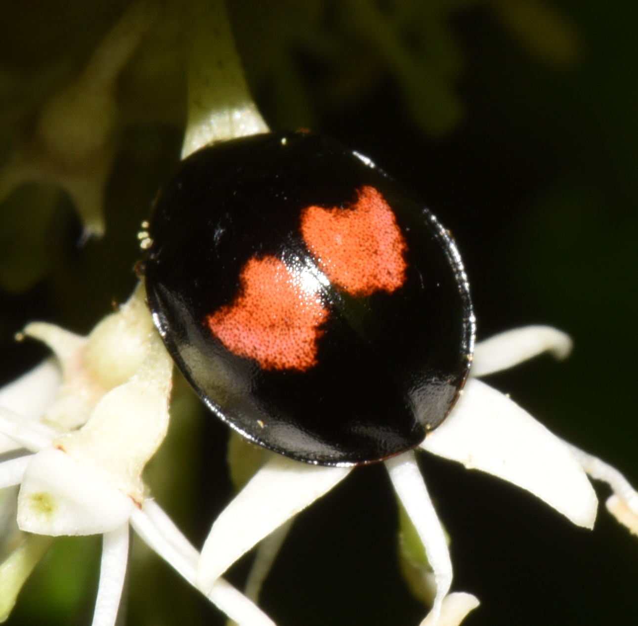 Calvia quatuordecimguttata (Lower Vine Brook, 7/10/09 12pm, Willard's Woods, 6/29/15 11am)