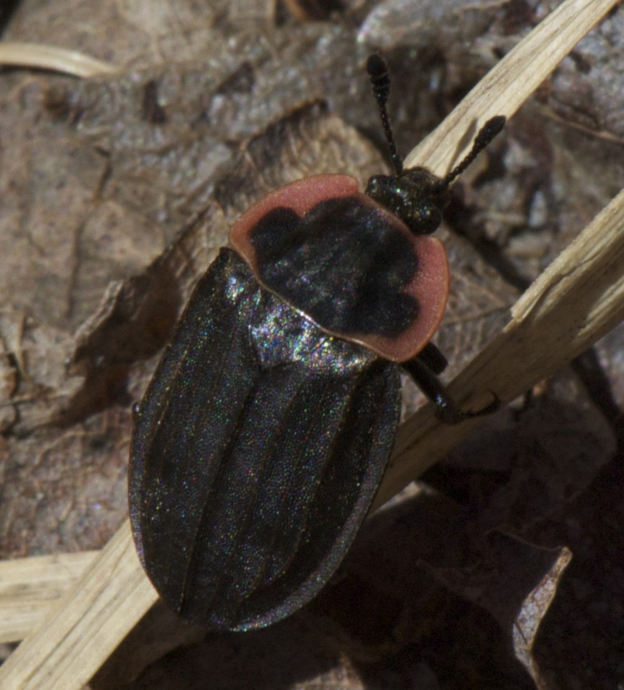 Neochlamisus sp. (Willard's Woods, 6/1/13 10am) I have never seen the serrated joint between the elytra before.