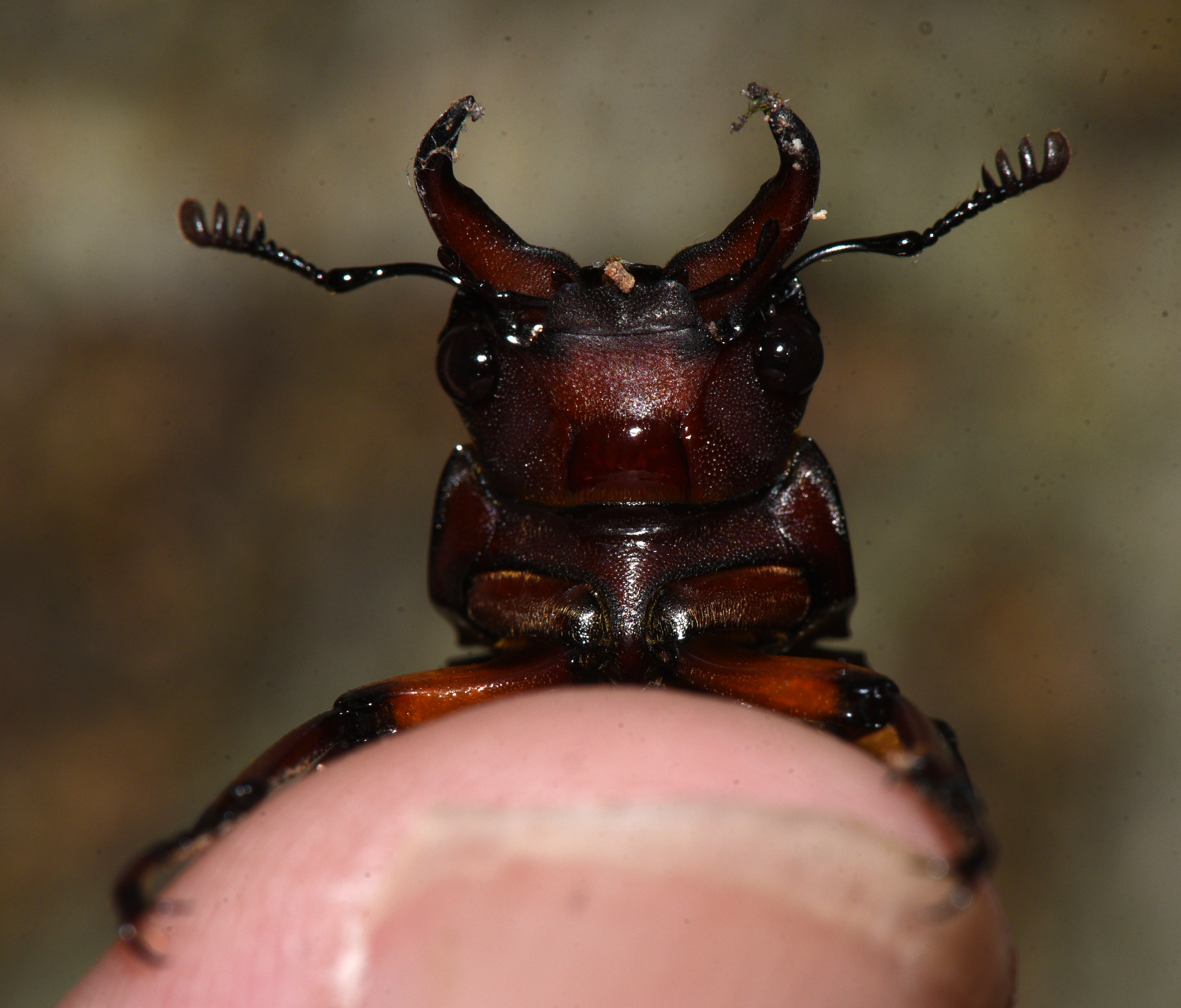 female Lucanus capreolus (Reddish-Brown Stag Beetle) (Lexington, 7/11/07 12am, Lower Vine Brook, 8/19/17 12pm)