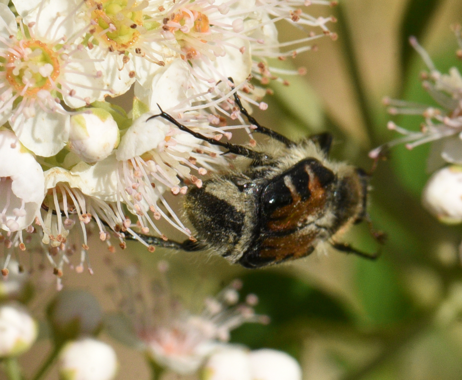 Trichiotinus affinis (Hairy flower scarab) (Lower Vine Brook, 7/8/2022 1pm, 7/9/2022 1pm) The last photo shows one next to a partially hidden Japanese beetle, which looks very much like it.