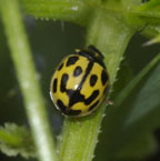 Propylaea quatuordecimpunctata (Introduced 14-spot ladybeetle) (Willard's Woods, 6/19/05 4pm, Lower Vine Brook, 6/20/09 10am, 7/3/13 11am, 7/5/14 12pm) A European import.