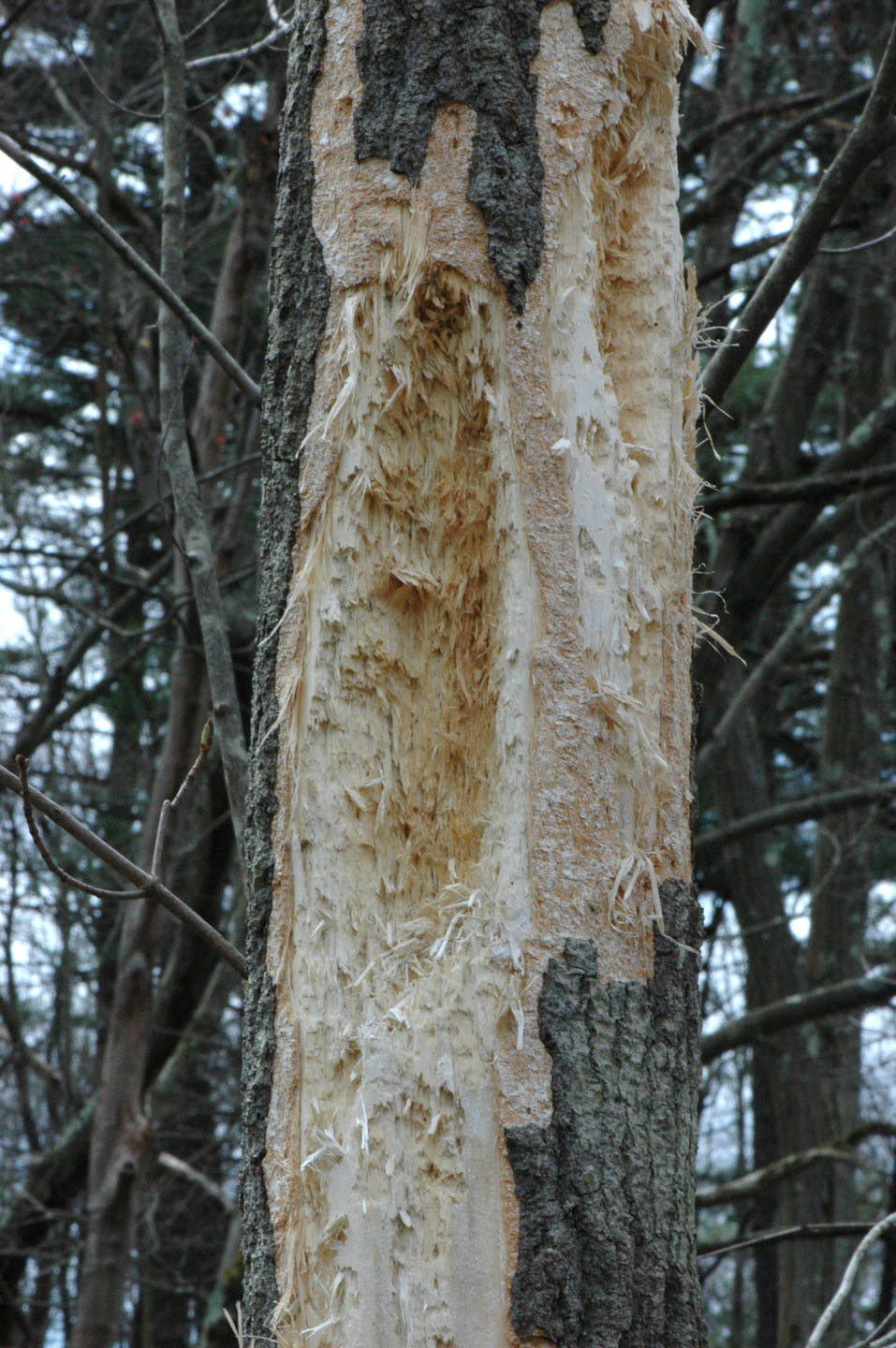 damage to tree from Dryocopus pileatus (Pileated Woodpecker) (Lower Vine Brook, 6/25/2022, damage 4/23/09 11am)