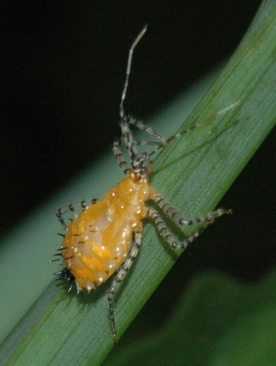nymph of an assassin bug (Willard's Woods, 8/21/06 10am, Lower Vine Brook, 8/10/13 12pm)