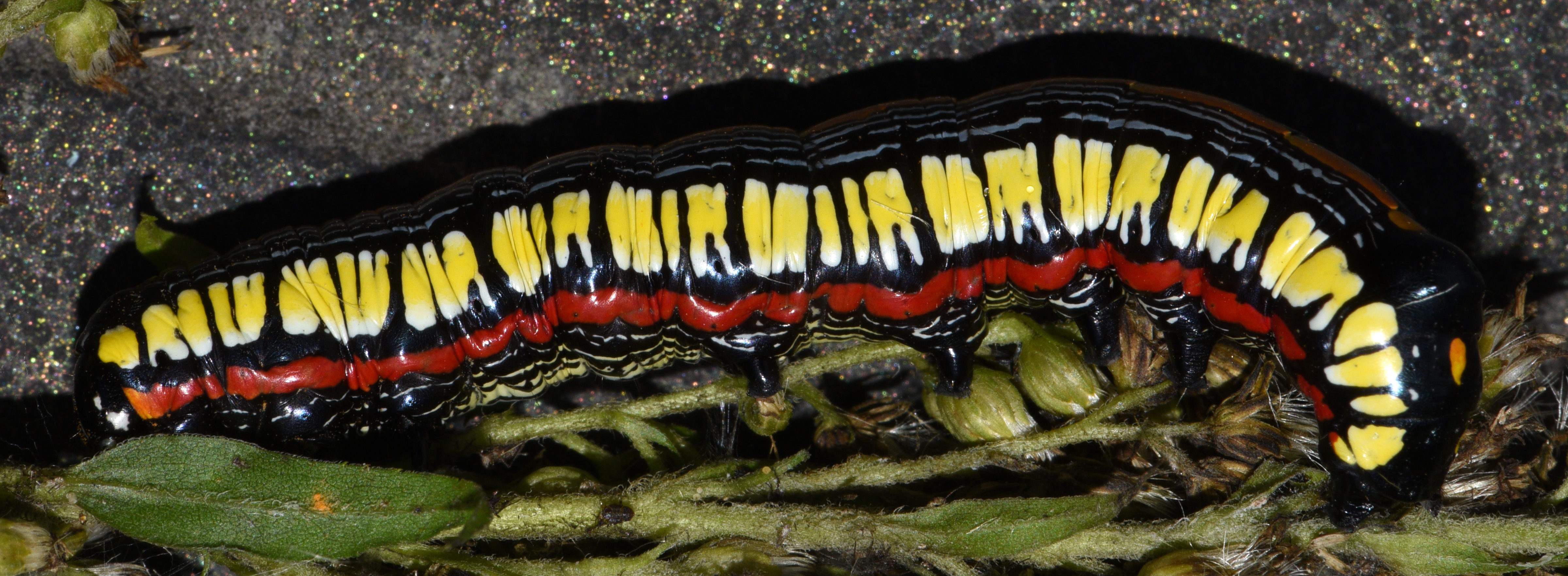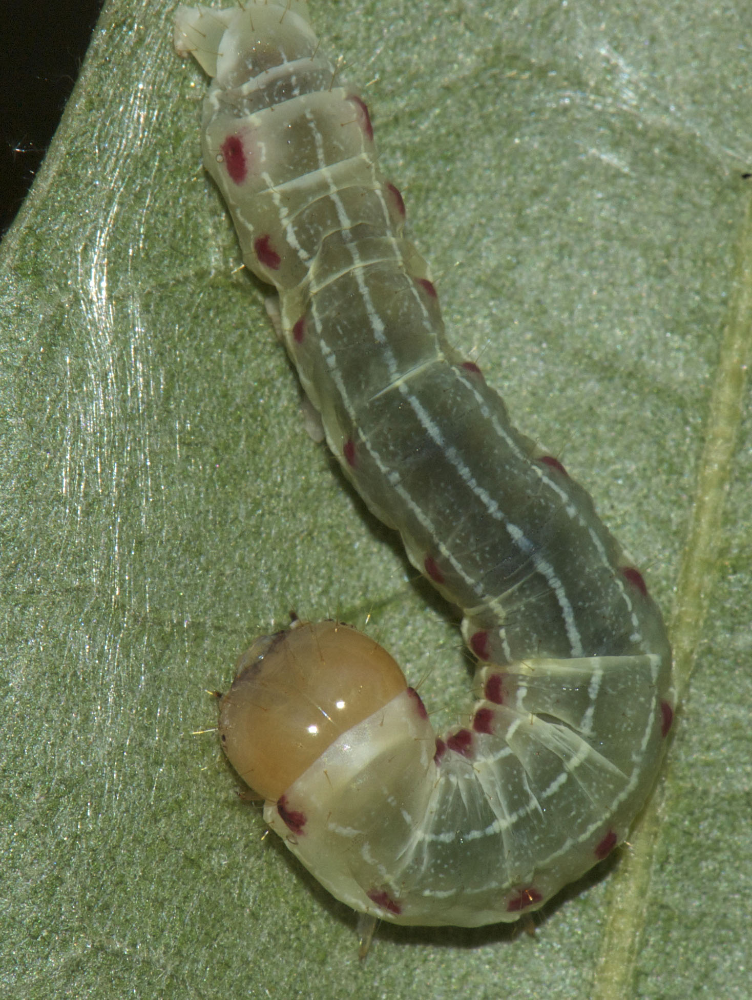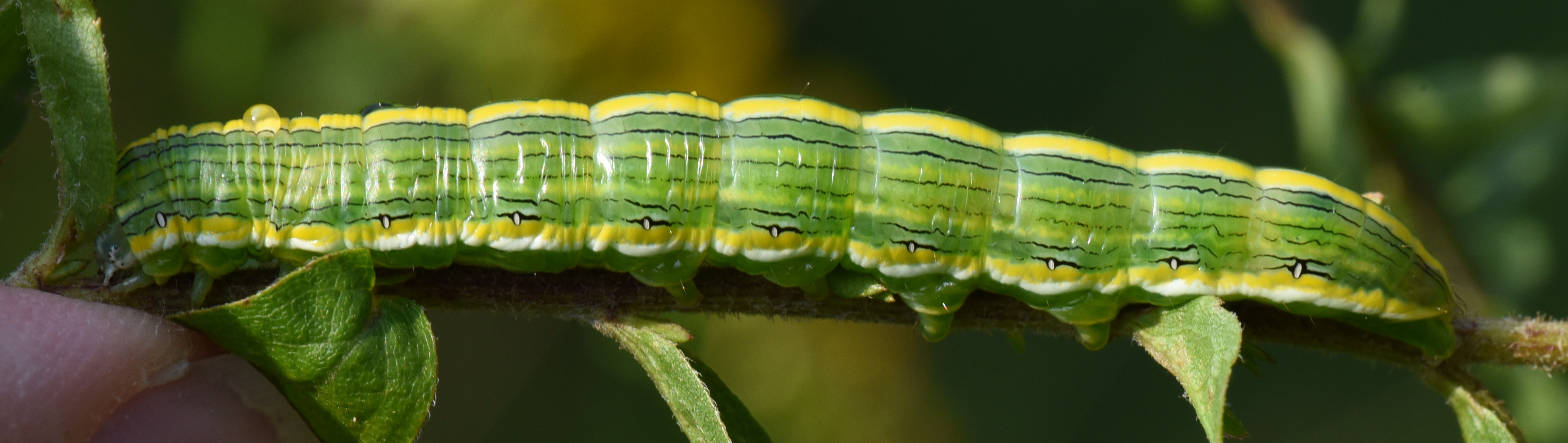 10202 Cucullia convexipennis (Brown-hooded Owlet) (Lower Vine Brook, 10/5/2019 4pm) On Goldenrod. I found one on a goldenrod plant on my patio and put it in my terrarium. It pupated on July 13 and emerged on August 13.