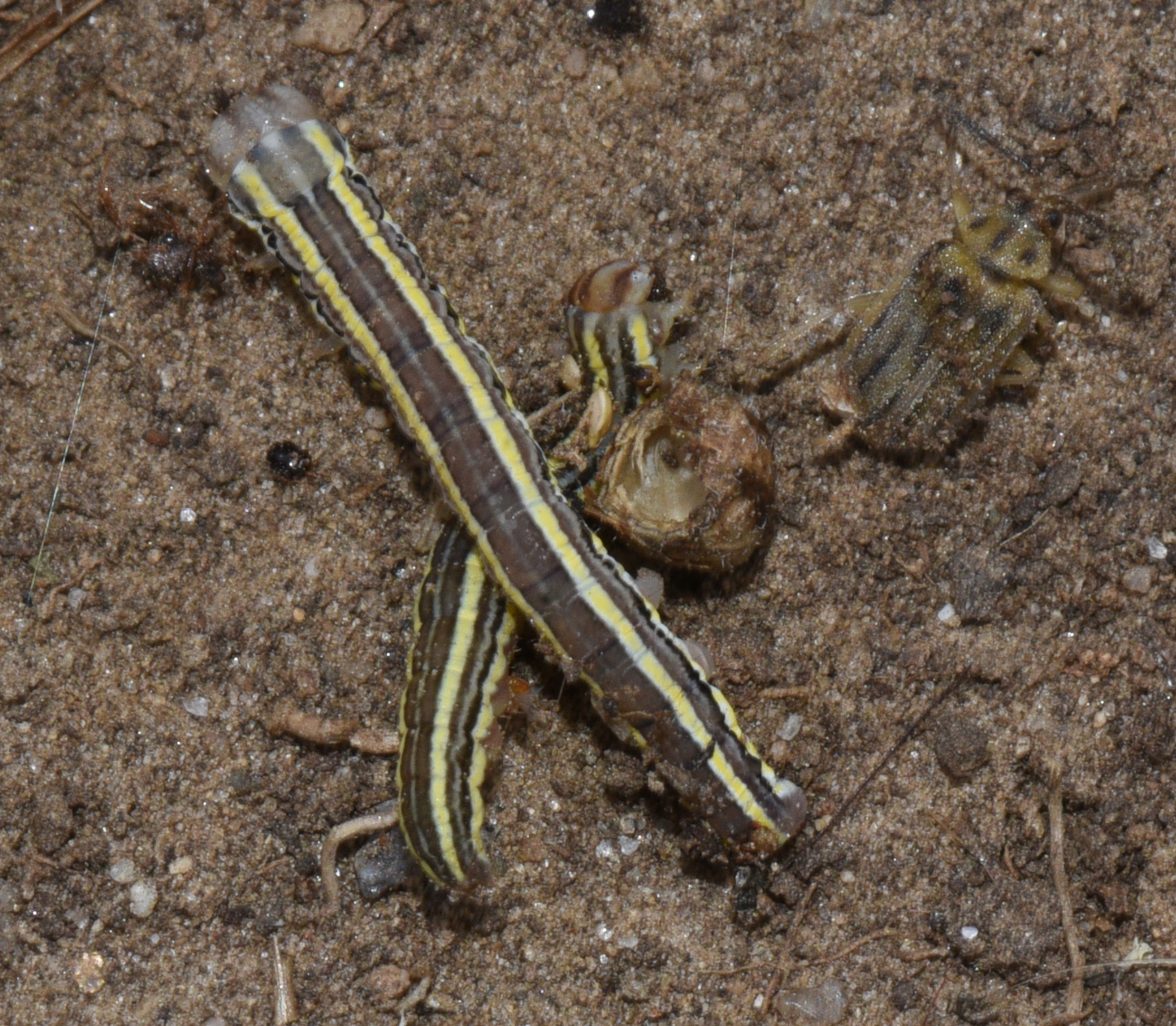 caterpillar 10304 Trichordestra legitima (Striped garden caterpillar moth) (Lexington, 8/17/2002 11pm, Lower Vine Brook, 9/9/2018 2pm)