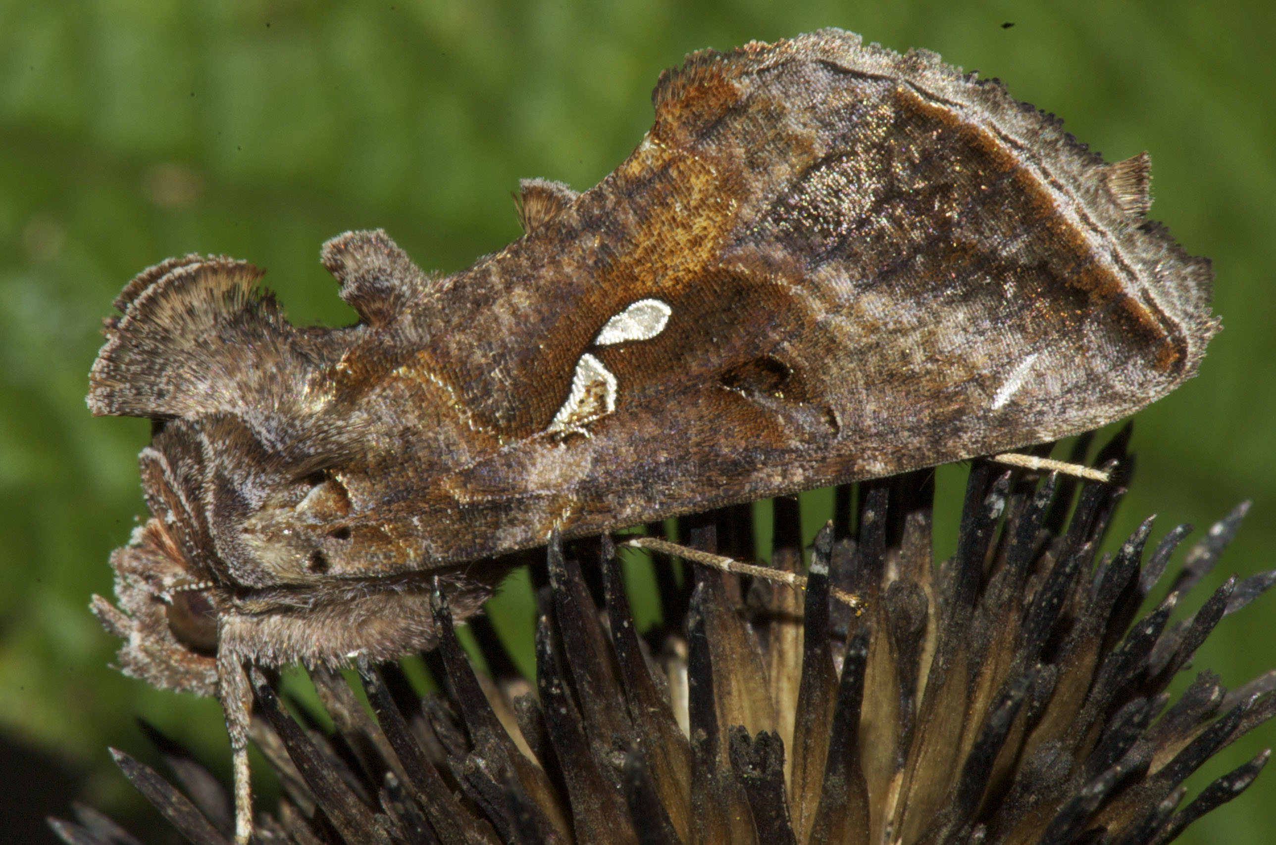 8908 Autographa precationis (Common looper moth) (Lexington, 10/6/02 1am, Lower Vine Brook, 9/24/12 10am)