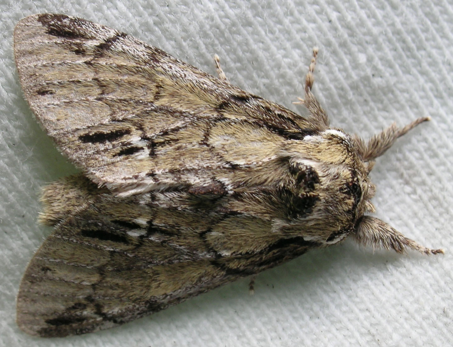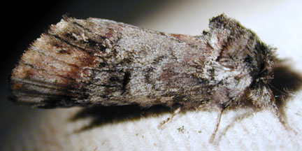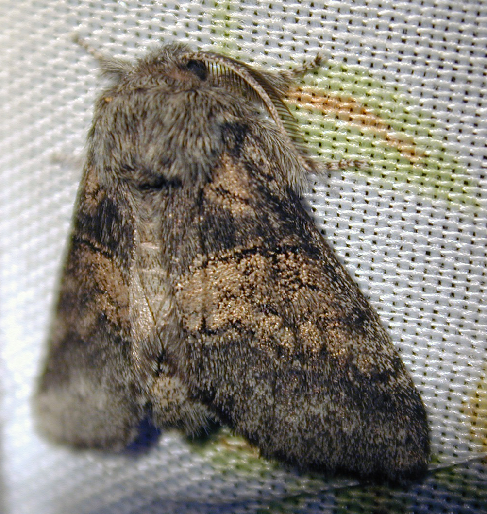 7952 or 7951 Symmerista canicosta or albifrons (Red-humped Oakworm moth or White-headed Prominent moth) (Lexington, 6/19/04 12am) I can't find what the distinguishing characteristics are for these two, and their ranges overlap, although albifrons is more common in the South.