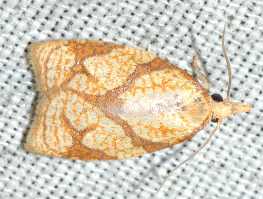 3720 Sparganothis reticulatana (Reticulated Fruitworm Moth) (Lexington, 8/4/05 12am, 7/28/05 12am)