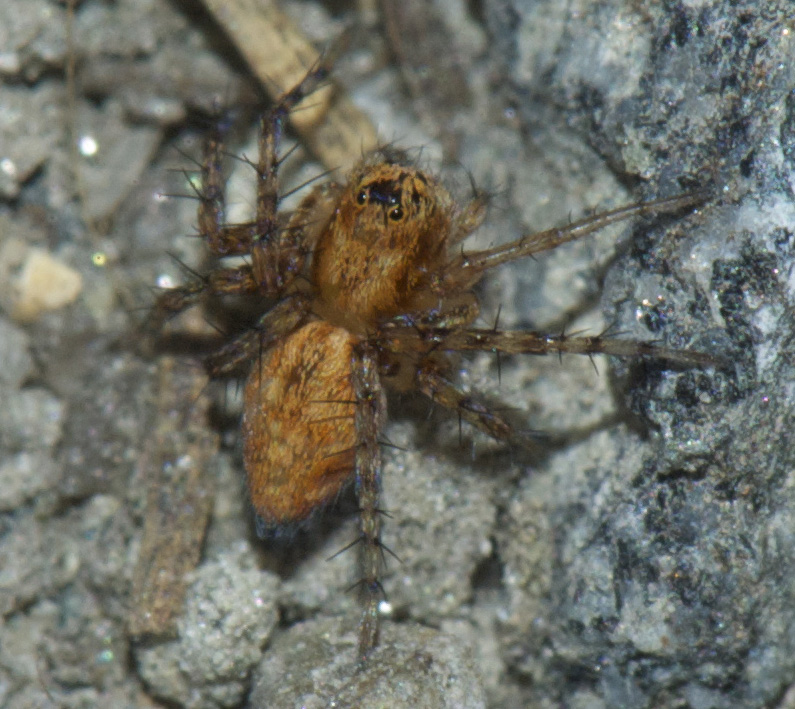 (Lower Vine Brook, 3/16/14 4pm) Maybe Agroeca pratensis in the family Liocranidae.